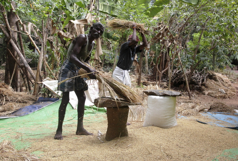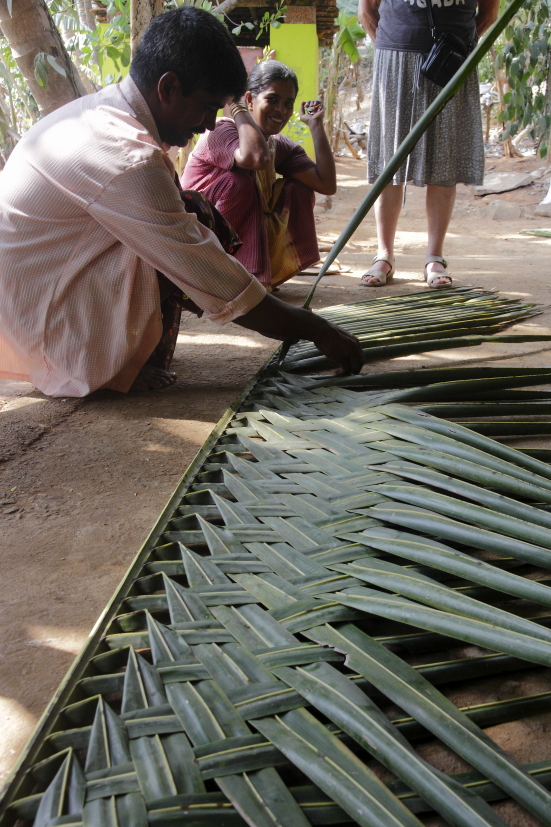 L'activité de tressage des palmes de cocotiers demeure importante dans le Kerala. Bien des familles n'ont pas encore les moyens de bâtir leur maison en dur. Cela représente une toiture efficace, maintenant la maison fraîche. Mais il faut la remplacer chaque année...