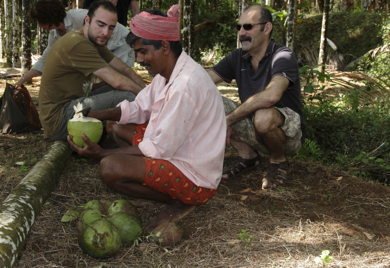 Nous avons trouvé une famille sympathique dans la campagne de la région de Thrissur qui a accepté de partager un moment avec les voyageurs qui souhaitent découvrir comment poussent les épices, les fruits et légumes locaux. Ils se font un plaisir de vous montrer leur petite ferme et de vous faire goûter les différentes plantes et fruits selon la saison. Cela permet de voir également comment les petites familles vivent, l’organisation familiale et d’apprécier l’accueil chaleureux des Kéralites.