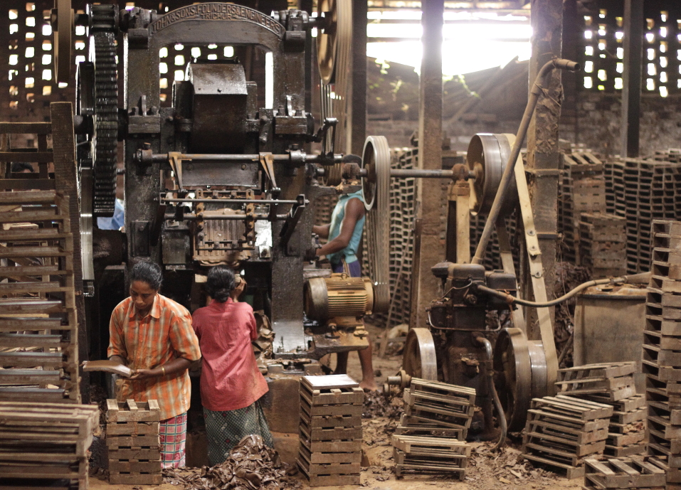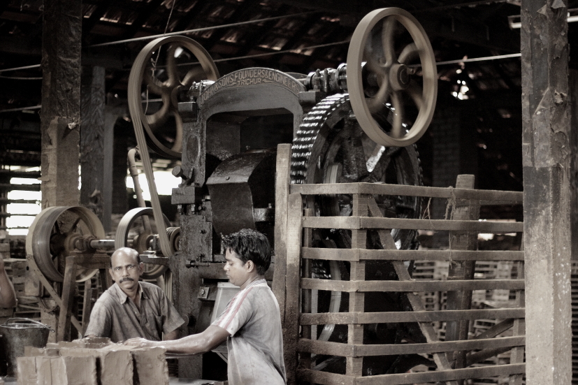 Tout au long de la saison, nous conduisons les voyageurs qui séjournent à Thrissur dans une tuilerie familiale. Cela permet de découvrir un procédé traditionnel de fabrication des tuiles. Un travail pénible dans des conditions de travail précaires. On remonte le temps de cinquante ou soixante années pour retrouver les procédés anciens et manuels.