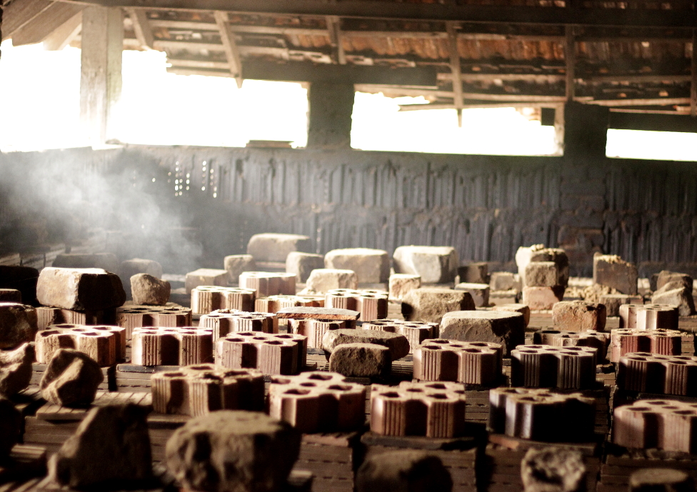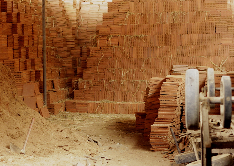 Les hangars immenses sont utilisés pour le sèchage des carreaux frais. Cela prend environ 6 mois de sèchage avant que les carreaux ne puissent être cuits.