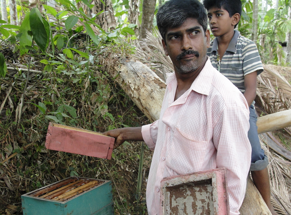 Le second frère Ouseph, toujours fier de nous montrer sa mini ruche. Le miel collecté est de l'avis de tous le plus parfumé jamais dégusté. C'est une denrée rare considérée précieuse comme l'or de sa couleur. Ils en collectent seulement environ 2 kgs par an ... et pourtant n'hésiteront pas à en verser une cuillère au creux de votre main pour vous le faire déguster...